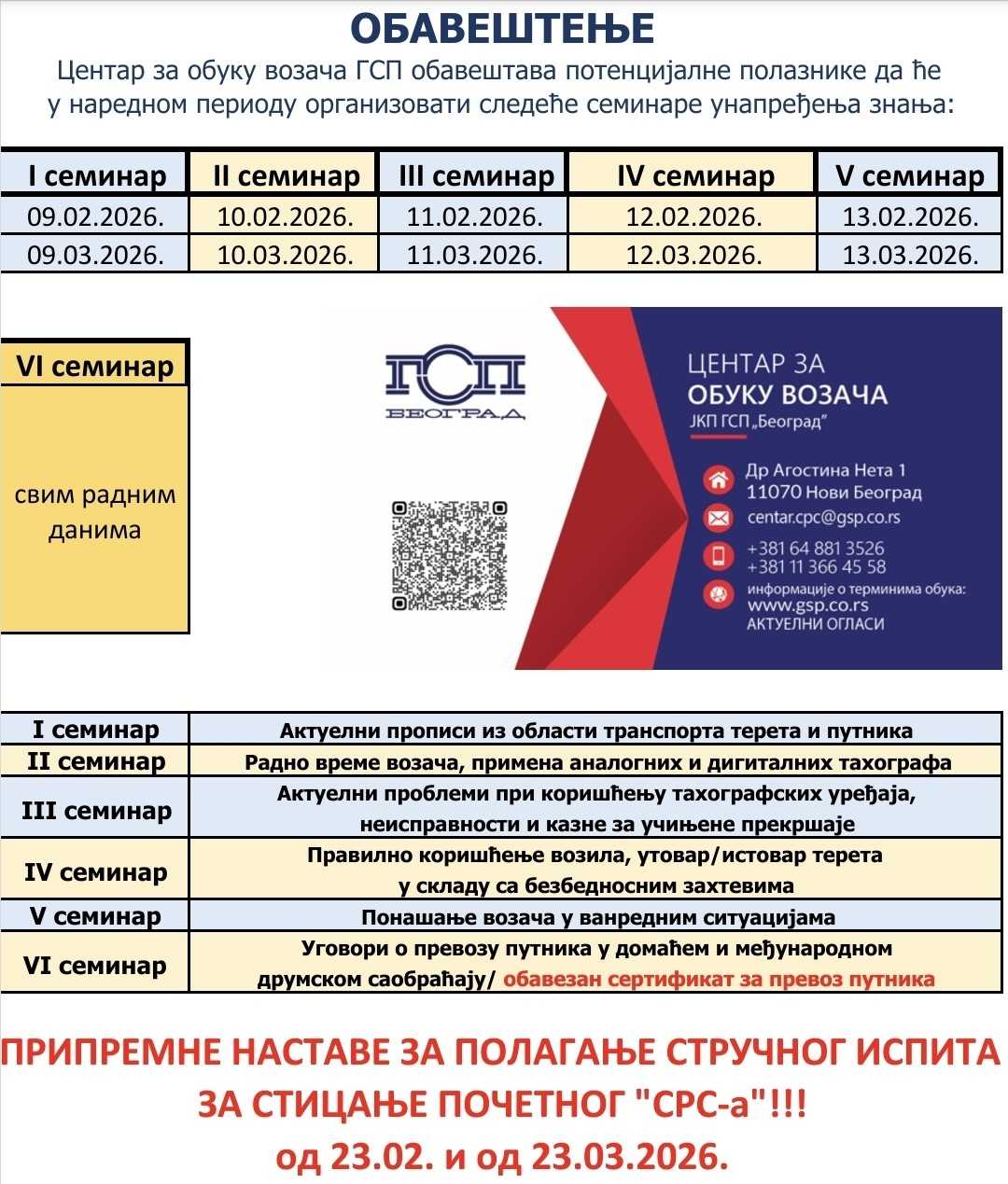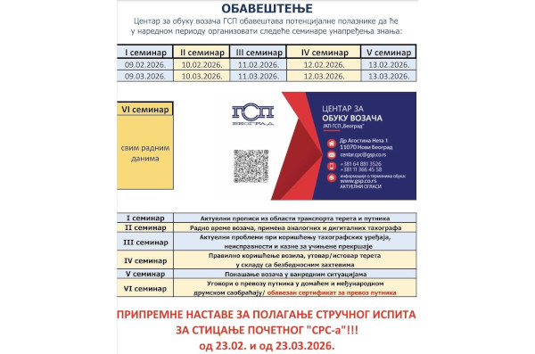 ЦЕНТАР ЗА ОБУКУ ВОЗАЧА - СЕМИНАРИ
